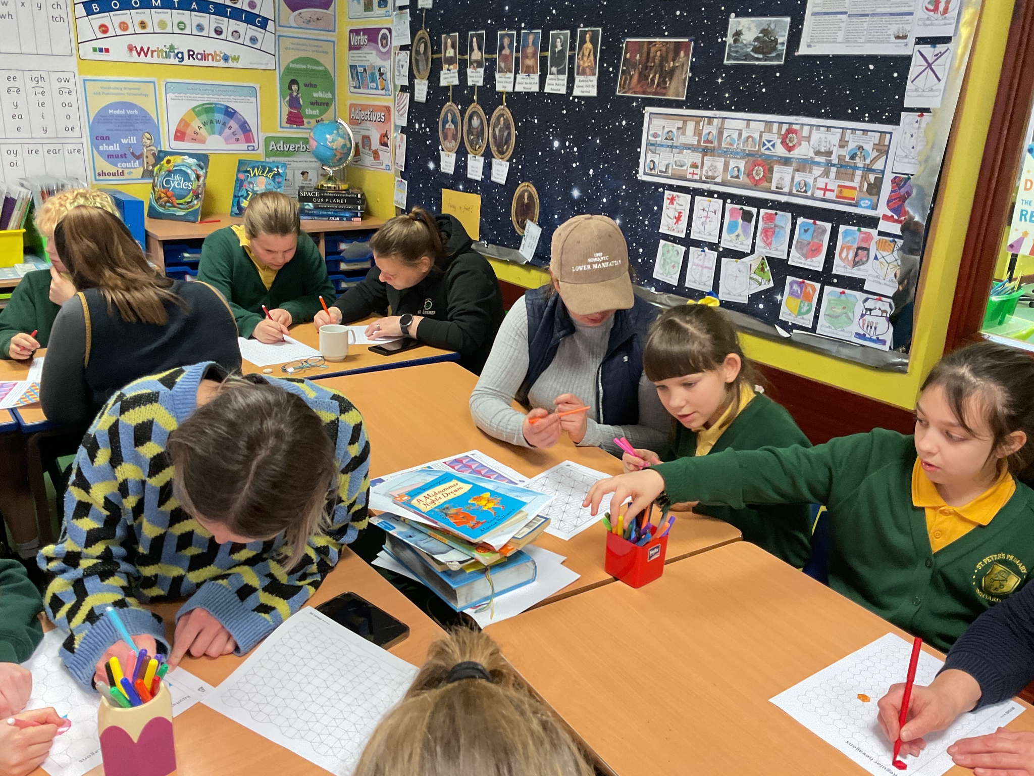 Please take a look at our Art of Maths photos. Each year, we enjoy working with parents and families to create a shared display that links Art, Maths and creativity.